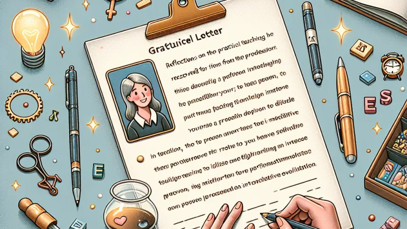 Spero che questa lettera vi trovi bene, immersa nei vostri progetti e con la solita passione che tanto vi contraddistingue nel mondo dell'istruzione. Mi rivolgo a voi con sincera gratitudine, poiché gli insegnamenti pratici che mi avete impartito nei mesi trascorsi insieme hanno avuto un impatto profondo sul mio percorso formativo e professionale.