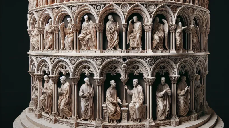 Il pulpito del Battistero di Pisa, realizzato tra il 1255 e il 126 da Nicola Pisano, rappresenta uno dei capolavori dell'arte medievale ed è considerato un punto di svolta nella scultura italiana. Quest'opera segna un momento cruciale nel passaggio dal romanico al gotico, con l'introduzione di uno stile più naturalistico e classicheggiante che prelude al Rinascimento.