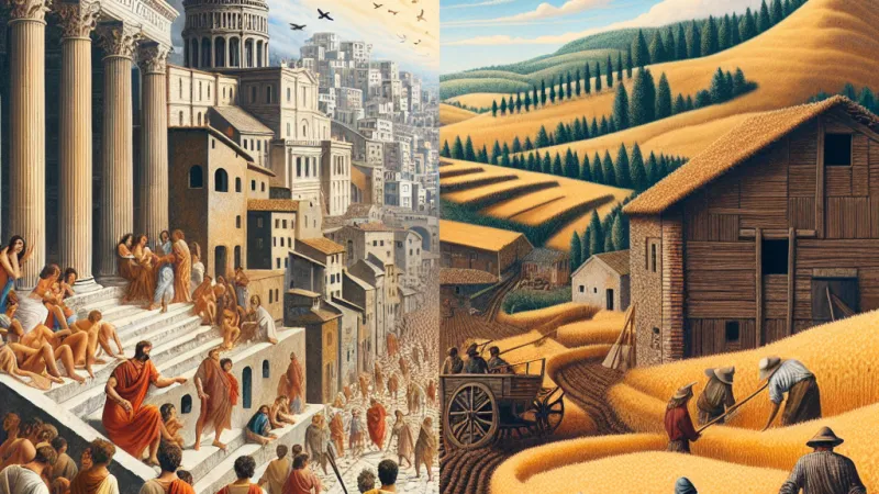 In sintesi, tra il sesto e il settimo secolo, gli abitanti di Roma e i contadini del nord vivevano in contesti molto diversi, influenzati dai cambiamenti politici e culturali dell'epoca. Mentre i romani vivevano in una città che cercava di mantenere una parvenza di prestigio passato, i contadini del nord si adattavano alla durezza e alla semplicità della vita agricola sotto un nuovo regime. Entrambi i gruppi però condividevano una resilienza comune, affrontando le sfide poste dalle instabilità del periodo con coraggio e determinazione.