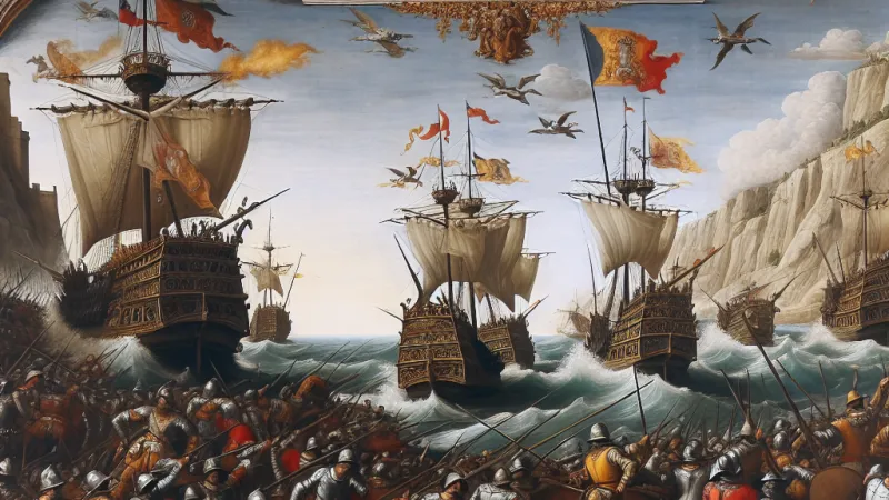La Battaglia di Lepanto (1571) segnò una svolta navale con la vittoria della Lega Santa contro l'Impero Ottomano, immortalata negli affreschi di Buti. ⚓️?