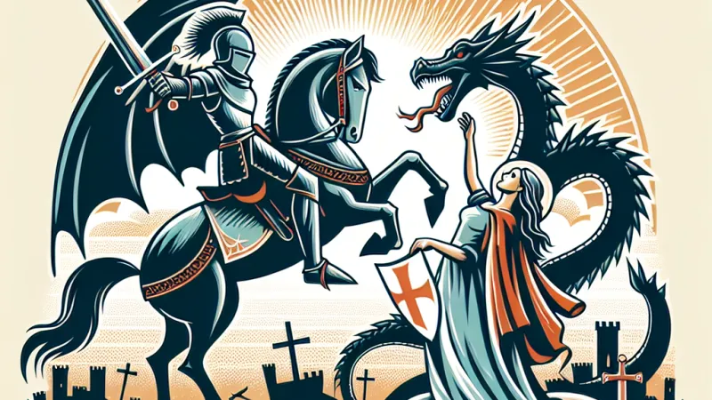 San Giorgio è una figura centrale nella tradizione cristiana, conosciuta e venerata come emblema di virtù cavalleresca. La leggenda più celebre legata a San Giorgio narra il suo famoso confronto con un drago, una creatura mitologica simbolo di male e eresia, che minaccia di divorare una principessa. San Giorgio, secondo il racconto, sconfigge il drago, salvando non solo la principessa, ma anche l'intero popolo minacciato.