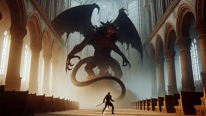 Nel silenzio opprimente della cattedrale, il suono delle parole di Morax si diffuse come un eco inquietante, penetrando nelle menti di tutti i presenti. Le antiche mura sembravano trattenere il respiro, quasi timorose di infrangere quel momento d'inquietante sacralità. Le candele vacillavano come se anche loro sentissero l'oscura presenza che pervadeva l'ambiente, proiettando ombre danzanti sul pavimento di pietra fredda. Ogni volto nella sala era un quadro di pura incredulità e paura, i nobili agghindati in sontuosi abiti da cerimonia si mescolavano ai popolani vestiti modestamente, ma tutti condividevano una stessa espressione di sgomento.